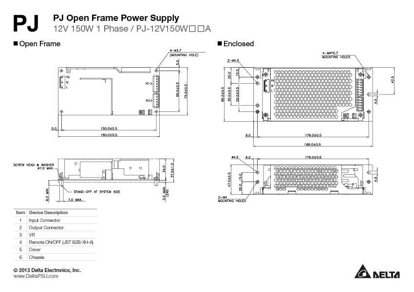 | PJ-12V150WBRA | Open Frame, remote ON/OFF |