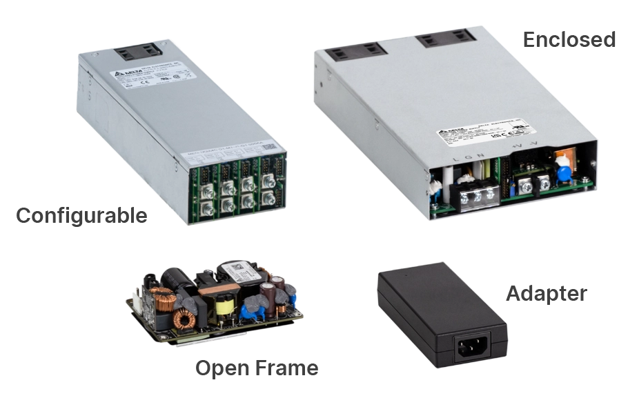 Figure 6: Delta’s enclosed, open frame, configurable medical power supplies and medical adapters all feature low leakage current.